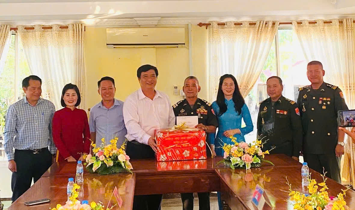 Nhân dịp Tết cổ truyền Chôl Chnăm Thmây của Campuchia, ngày 05/4/2025, tại Ủy ban huyện Snuol, và trụ sở các LLVT đứng chân trên địa bàn huyện Snuol tỉnh Kratie’ Vương Quốc Campuchia, Đoàn công tác của Huyện ủy-HĐND-UBND-UBMTTQVN và đại diện đơn vị, Ban CHQS Huyện cùng các ban ngành đoàn thể huyện Lộc Ninh do ông Ngô Đình Vinh - UVBTV Huyện ủy, Phó chủ tịch HĐND huyện làm trưởng đoàn đã đến thăm tặng quà, chúc Tết lãnh đạo chính quyền, các đơn vị LLVT và nhân dân huyện Snuol, tỉnh Kratie’ Vương quốc Campuchia.