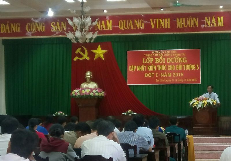 Tham gia lớp học gồm có 162 học viên. Lớp Bồi dưỡng, cập nhật kiến thức cho đối tượng 5 (đợt 1) năm 2015 sẽ diễn ra từ ngày 28/12/2015 đến ngày 31/12/2015. Trong thời gian này, các học viên sẽ được nghe giảng viên trình bày sáu chuyên đề gồm: Đổi mới hệ thống chính trị của Việt Nam trong điều kiện phát triển kinh tế thị trường định hướng xã hội chủ nghĩa và hội nhập quốc tế; Đảng bộ huyện Lộc Ninh với công tác tư tưởng, lý luận trong thời kỳ đẩy mạnh công nghiệp hoá, hiện đại hoá hiện nay; Chủ nghĩa Mác – Lê nin, tư tưởng Hồ Chí Minh và công cuộc xây dựng chủ nghĩa xã hội ở Việt Nam trong thời kỳ đổi mới; xây dựng và hoàn thiện kinh tế thị trường định hướng xã hội chủ nghĩa ở Việt Nam hiện nay; Đảng cầm quyền và nâng cao năng lực lãnh đạo của Đảng Cộng sản Việt Nam trong sạch, vững mạnh; nhà nước pháp quyền và xây dựng Nhà nước pháp quyền xã hội chủ nghĩa của Nhân dân, do Nhân dân, vì Nhân dân; Đẩy mạnh công nghiệp hoá, hiện đại hoá, xây dựng cơ sở vật chất của chủ nghĩa xã hội.