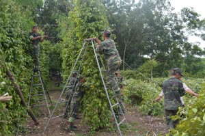 Cán bộ, chiến sỹ giúp nhân dân dựng lại nọc tiêu gãy đổ