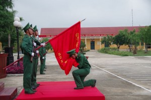 Binh nhì Nguyễn Việt Hùng, chiến sĩ tiểu đội 20,Trung đội 7, Đại đội Cơ động Tuyên thệ trước Quân kỳ quyết thắng