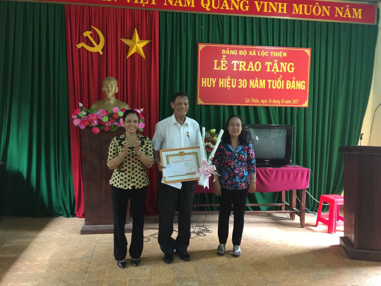 Phát biểu tại buổi Lễ, đồng chí Giang Thị Hiền, Bí thư Đảng ủy xã đã ghi nhận những đóng góp, cống hiến của đồng chí Đoàn Xuân Thanh trong suốt 30 năm qua, đồng chí đã không ngừng học tập và làm việc, cống hiến sức mình cho sự nghiệp xây dựng và phát triển Đảng, là tấm gương sáng cho con cháu noi theo, đồng thời mong muốn các đồng chí trong Chi bộ tiếp tục phấn đấu, rèn luyện đóng góp nhiều cho Đảng, xây dựng Đảng trong sạch vững mạnh, đi đầu trong các phong trào.