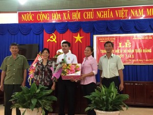 Buổi Lễ được tổ chức long trọng, trang nghiêm với sự tham dự của Ủy viên Ban Thường vụ Huyện ủy phụ trách xã, các đồng chí ủy viên Ban Thường vụ Đảng ủy, các đảng viên đang sinh hoạt tại hai chi bộ 5 và chi bộ 7. Thừa ủy quyền của lãnh đạo tỉnh, huyện, đồng chí Phan Thanh Quang - Bí thư Đảng ủy xã đã công bố các quyết định tặng Huy hiệu Đảng do Phó Bí thư Thường trực Tỉnh ủy Nguyễn Văn Lợi ký, đồng chí Ủy viên Ban Thường vụ Huyện ủy phụ trách xã đã trao các Quyết định, hoa và tặng phẩm kèm theo cho hai đồng chí. Các đảng viên hai chi bộ cũng trao tặng quà, chúc mừng hai đồng chí.