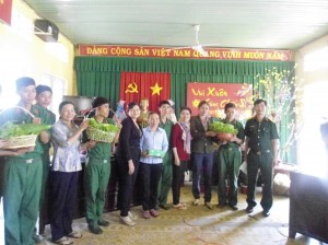 Đến ngày 15/2/2015, Ban thường vụ Hội LHPN huyện đã phối hợp với 02 đơn vị là Đại đội 31-Lộc An và Tiểu đoàn 208- Lộc Hưng tổ chức Giao lưu “ Vui Xuân cùng chiến sỹ” với hoạt động trọng tâm là Hội thi gói bánh chưng, bánh tét, giao lưu văn nghệ, hái hoa dân chủ v.v ..với hơn 100 cán bộ, hội viên , phụ nữ có kinh nghiệm gói bánh đến từ 16 xã, thị trấn được phân công cụ thể tại 02 đơn vị gồm các xã Lộc Thuận, Lộc Thái, Lộc Thiện, Lộc Thành, Lộc Điền, Lộc Khánh, Lộc Hưng, Lộc Thịnh tham gia tại Tiểu đoàn 208 để gói gần 300 cái bánh; các xã Lộc Hiệp; Lộc Quang; Lộc Phú, Lộc Tấn, Lộc An, TT Lộc Ninh, Lộc Thạnh, Lộc Hòa tham gia tại Đại đội 31 để gói gần 150 cái bánh.Hội đã có sự phân công, hiệp đồng chặt chẽ giữa các bên, trong đó BTV Hội LHPN huyện xây dựng, triển khai kế hoạch, thống nhất nội dung, chương trình, phân công cán bộ phụ trách từng địa điểm với các đơn vị liên quan, Tiểu đoàn 208 và Đại đội 31chuẩn bị nếp, đậu, thịt và các dụng cụ phục vụ việc gói bánh, chuẩn bị âm thanh, ánh sáng và các tiết mục văn nghệ phục vụ giao lưu; các cơ sở chuẩn bị dây, lạt và con người để tham gia. Bắt đầu từ 7h30 đến 11h00 cùng ngày, tại 02 địa điểm, các đội thi đã gói được 360 bánh tét và bánh chưng và tham gia giao lưu văn nghệ, hái hoa dân chủ gồm các câu hỏi tìm hiểu về Đảng, Bác Hồ, truyền thống Quân đội nhân dân Việt Nam, về truyền thống của Hội và phụ nữ Việt Nam. Cũng nhân dịp này, cơ quan thường trực Hội LHPN huyện và thường trực Hội LHPN các xã, thị trấn đã tặng những giỏ qùa Tết chứa đựng sự yêu mến, trân trọng của Hội dành tặng cho 02 đơn vị. Sau bữa cơm trưa được chính bàn tay của các chiến sĩ hậu cần Đại đội 31 với nhiều món ăn đơn giản nhưng lạ miệng, ngon do đơn vị tự sản xuất, chiến sỹ và chị em phụ nữ lưu luyến chia tay và cùng hẹn gặp lại trong thời gian tới.