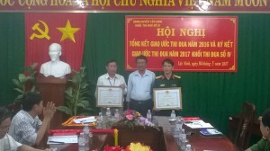 Tại hội nghị đã tiến hành trao khen thưởng cho những đơn vị có thành tích suất sắc năm 2016 gồm: Đơn vị Phòng Nội vụ được UBND tỉnh tặng cờ thi đua suất sắc; đơn vị Văn phòng HĐND-UBND huyện được Chủ tịch UBND tỉnh tặng Bằng khen; đơn vị Ban CHQS huyện được UBND tỉnh công nhận xếp hạng ba khối thi đua và 02 đơn vị Thanh tra huyện, Công an huyện được Chủ tịch UBND huyện tặng giấy khen.