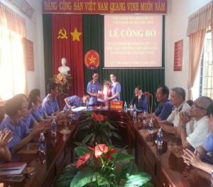 Tại buổi lễ, đồng chí Phạm Thị Bích Thủy, Ủy viên Ban cán sự Đảng, Phó Viện trưởng Viện KSND tỉnh đã công bố và trao Quyết định số: 677/QĐ-VKSTC-V15, ngày 13/10/2016 của Viện trưởng VKSND Tối cao cho đồng chí Lê Văn Quang, Kiểm sát viên sơ cấp giữ chức vụ Phó Viện trưởng VKSND huyện Lộc Ninh kể từ ngày 01/11/2016. Đồng chí Phạm Thị Bích Thủy mong muốn trên cương vị mới đồng chí Lê Văn Quang sẽ tiếp tục đề cao tinh thần trách nhiệm, giữ vững phẩm chất đạo đức cách mạng, không ngừng nghiên cứu học tập để hoàn thành tốt nhiệm vụ, chức trách mà Đảng và nhà nước giao.