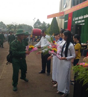 Đúng 6h sáng ngày 19/2/2014, trong cái khí se lạnh từng đoàn người lần lượt di chuyển về khu trung tâm của lễ giao quân; những cái nắm tay bịn rịn, những dòng nước mắt, những lời chúc mạnh khỏe, bình an hay cố gắng đã được gửi đến những thanh niên đang khoác trên mình màu áo lính. Năm nay huyện Lộc Ninh có 160 thanh niên tham gia nghĩa vụ quân sự và được đưa về huấn luyện tại Tiểu đoàn 208 thuộc Bộ chỉ huy quân sự tỉnh và Bộ chỉ huy Bộ đội biên phòng tỉnh. Sau bài phát biểu hứa quyết tâm của đại diện thanh niên nhập ngũ, từng dòng người lại di chuyển về xe đưa các bạn thanh niên về nơi huấn luyện, bạn Nguyễn Hồng Minh Tâm, chiến sỹ tình nguyện nhập ngũ lâu dài cho biết “Chúng em thật tự hào khi được khoát trên người màu áo lính, dẫu biết rằng sẽ còn nhiều bỡ ngỡ trong môi trường quân đội nhưng với sức trẻ của mình chúng em tin rằng sẽ vượt qua tất cả để hoàn thành khóa huấn luyện đầu tiên của đời lính, đối với em được tuyển chọn nhập ngũ là một niềm tự hào không chỉ đối với bản thân mà còn cả gia đình và bạn bè, hy vọng rằng với tinh thần của mình chúng em sẽ trở thành một người lính xứng danh bộ đội cụ Hồ và không phụ lòng tin cậy của các cô chú lãnh đạo và gia đình, bạn bè đã dành cho chúng em.