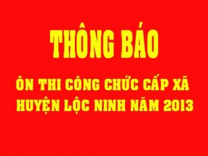 Căn cứ Quyết định số 28/2013/QĐ-UBND ngày 30/5/2013 của UBND tinh Bình Phước về việc ban hành quy chế tuyển dụng công chức ở xã, phường, thị trấn trên địa bàn tỉnh Bình Phước và Căn cứ Thông báo số 206/TB-UBND ngày 10/10/2013 của UBND huyện Lộc Ninh về tuyển dụng công chức xã, thị trấn năm 2013, UBND huyện Lộc Ninh thông báo tổ chức ôn thi tuyển dụng công chức cấp xã năm 2013, như sau: