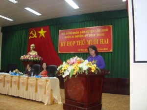Bà Trần Thị Ánh Tuyết-UV.BTV Tỉnh ủy-Bí thư Huyện ủy Lộc Ninh phát biểu tại kỳ họp