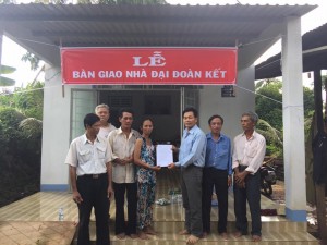 Dự lễ bàn giao có đại diện lãnh đạo Đảng ủy, HĐND, UBND, UBMTTQVN xã, lãnh đạo ban điều hành và các ban ngành đoàn thể ấp. Gia đình bà Lê Thị Mỹ Nhung sinh năm 1971, hoàn cảnh gia đình khó khăn, trước đây 2 vợ chồng bà thường xuyên đi hái dừa về bán, sau này sức khỏe yếu bà thì ở nhà chăm sóc các con, chồng đi làm thuê mướn. Được sự quan tâm của lãnh đạo các cấp đã vận động xây dựng căn nhà tổng diện tích 45m2 tổng giá trị 50 triệu đồng, trong đó quỹ “Vì người nghèo” huyện hỗ trợ 25 triệu đồng, số còn lại do gia đình đóng góp thêm.