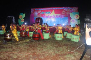 Sau màn trống hội chào mừng, bà Trần Thị Bích Lệ - Phó chủ tịch UBND huyện – Phó ban tổ chức Lễ 7/4 phát biểu khai mạc đêm văn nghệ.