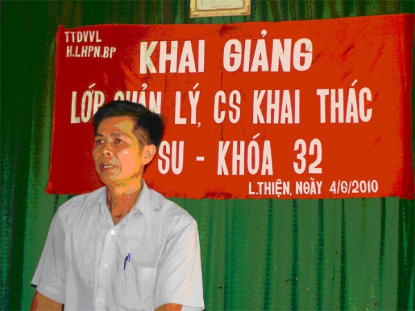 Đây cũng là lớp dạy nghề nông thôn thứ 10 mà Hội Liên hiệp phụ nữ huyện phối hợp tổ chức trong 6 tháng đầu năm 2010 (8 lớp Quản lý, chăm sóc, khai thác cao su và 02 lớp Thú y). Các lớp học này đã thu hút 298 học viên tham gia (trong đó có 156 phụ nữ, 92 học viên người dân tộc thiểu số, 34 học viên tôn giáo). Từ đầu năm đến nay, Hội đã giới thiệu 214 chị hội viên, phụ nữ và con em đi làm ở các nông trường, trang trại cao su.