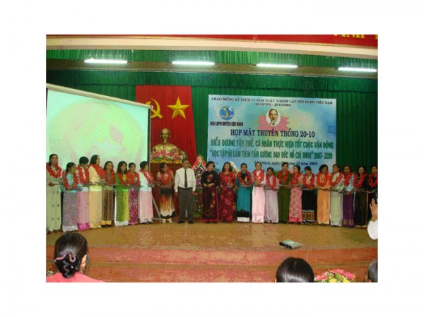 Nhằm nâng cao kiến thức và bản lĩnh chính trị cho CB, HVPN, BTV Hội LHPN huyện đã tổ chức Hội thi “Tìm hiểu và kể chuyện về tấm gương đạo đức Hồ Chí Minh” cấp huyện năm 2008, qua đó đã tạo đợt sinh hoạt chính trị sâu rộng trong tổ chức Hội, đến nay đã có 08/16 BCH Hội LHPN xã, thị trấn đã tổ chức Hội thi “Tìm hiểu và kể chuyện về tấm gương đạo đức Hồ Chí Minh” cấp cơ sở và nhận được sự hưởng ứng, tham gia nhiệt tình của toàn thể đội ngũ CB, HV và quần chúng nhân dân địa phương, góp phần phát động cho người người, nhà nhà cùng học tập và làm theo gương Bác .