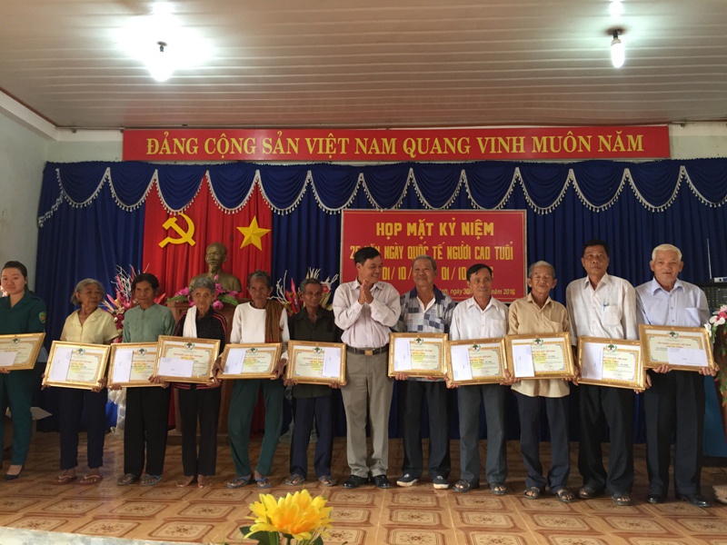 Tại trụ sở các xã, thị trấn, tùy theo điều kiện, tình hình thực tế, mỗi đơn vị có những hình thức tổ chức khác nhau để thăm hỏi, chúc thọ, động viên, tặng quà các cụ. Nhiều xã tổ chức họp mặt kỷ niệm, ôn lại truyền thống, lịch sử ra đời Ngày Quốc tế Người cao tuổi 01/10, các chính sách của Đảng, Nhà nước đối với người cao tuổi Việt Nam, giao lưu văn nghệ, biểu diễn thể dục dưỡng sinh, tặng quà cho các cụ. Có nơi kết hợp trao tặng quà cho người cao tuổi cô đơn, không nơi nương tựa, mừng thọ, tôn vinh các cặp vợ chồng người cao tuổi sống hạnh phúc, là tấm gương sáng cho các thế hệ con cháu noi theo. Cũng có những khu dân cư có nhiều cụ cao tuổi, các ban, ngành, đoàn thể ấp cũng đã tổ chức họp mặt, thăm hỏi, tặng quà, mừng thọ các cụ. Nhiều cụ dù hơn trăm tuổi nhưng sức khỏe còn rất tốt, đi lại bình thường, rất minh mẫn, lạc quan, yêu đời, không cần phải có con cháu dẫn dắt.