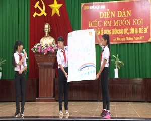Diễn đàn “Điều em muốn nói” năm 2017 được huyện Lộc Ninh tổ chức nhằm giúp cho các em có thể nói lên những nguyện vọng, mong ước của mình đến các cấp ngành của huyện cũng như của toàn xã hội. Qua diễn đàn, thể hiện sự quan tâm của các cấp ủy, chính quyền, các ngành, gia đình và xã hội về ý nghĩa, tầm quan trọng của công tác chăm sóc, giáo dục và bảo vệ trẻ em cũng như phòng ngừa, hạn chế tối đa tình trạng trẻ em bị bạo lực, xâm hại hướng tới phát động toàn xã hội chung tay bảo vệ trẻ em khỏi bạo lực, xâm hại, trẻ em được sống trong môi trường an toàn, lành mạnh và được phát triển toàn diện./.