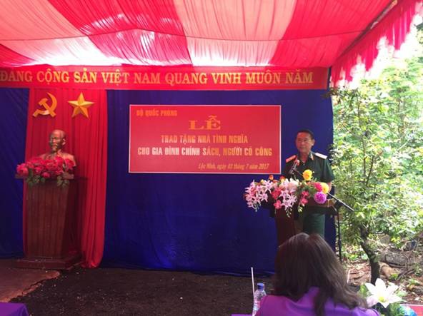 Được sự quan tâm, giúp đỡ, hỗ trợ kinh phí của lãnh đạo Bộ Quốc phòng Việt Nam, sau một thời gian triển khai thực hiện từ khâu rà soát, xét chọn, lập danh sách, hướng dẫn lập hồ sơ, thủ tục, tiến hành xây dựng, nghiệm thu, đến đầu tháng 7/2017, 05 căn nhà tình nghĩa cho gia đình chính sách, người có công trên địa bàn huyện Lộc Ninh đã cơ bản hoàn thành.