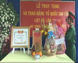 Tại buổi Lễ trao bằng “Tổ quốc ghi công” liệt sỹ Lâm Thanh được trao cho bà Vũ Thị Duyến là vợ đồng chí Lâm Thanh và thân nhân gia đình. Dịp này. Lãnh đạo Ban Chỉ huy Quân sự tỉnh, lãnh đạo huyện, xã, các đồng chí lão thành cách mạng, cán bộ chiến sỹ LLVT huyện cùng đồng chí, đồng đội đã thắp những nén hương và tri ân liệt sỹ Lâm Thanh./.
