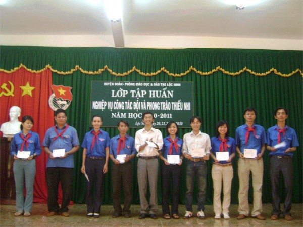 Trong 3 ngày từ 20 đến 22/10/2010, Huyện Đoàn phối hợp Phòng GD&ĐT huyện đã tổ chức lớp tập huấn nghiệp vụ công tác Đội và phong trào thiếu nhi năm học 2010-2011 cho 35 Tổng phụ trách Đội trong toàn huyện.